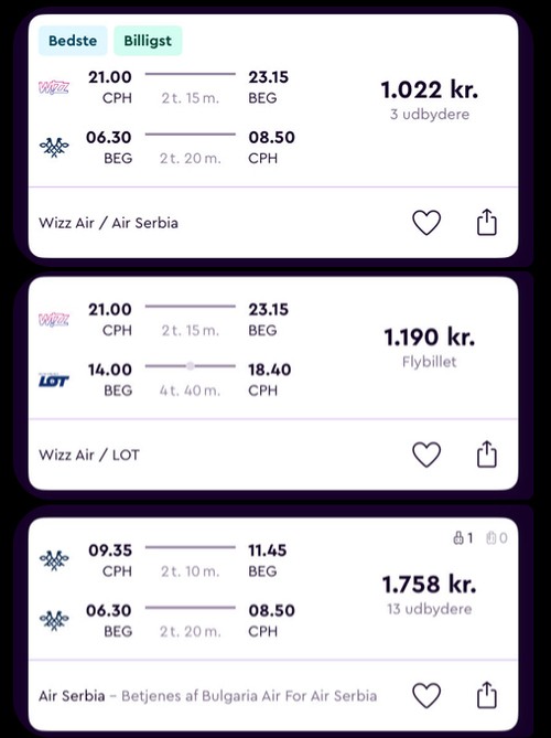 Konceptet er simpelt, du booker fly og vi sørger for resten. (Se hvilke fly vi anbefaler længere nede på billedet.)